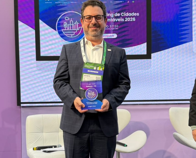 Palmas foi premiada nesta quarta-feira, 25, por conquistar o 1º lugar no Ranking Região Norte de Cidades Sustentáveis da plataforma digital Bright Cities, que é referência na análise de indicadores conforme a ISO 37120. O prêmio foi recebido pelo secretário de Planejamento e Gestão, André Cheguhem, que foi ao Smart City Expo Curitiba 2026, representando o prefeito de Palmas, José Eduardo Siqueira Campos. Cheguhem esteve acompanhado do secretário municipal da Fazenda e Transformação Digital, Fabiano de Souza.