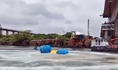 Depois de nove meses submerso, o caminhão que caiu com a Ponte Juscelino Kubitschek de Oliveira, entre Aguiarnópolis (TO) e Estreito (MA), começou a ser retirado...