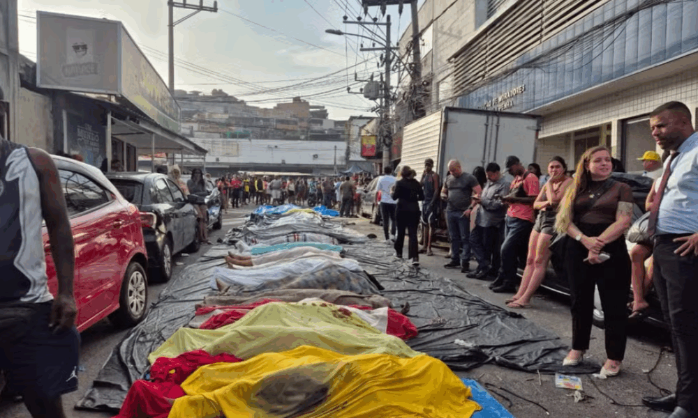 Moradores do Complexo da Penha, na Zona Norte do Rio de Janeiro, levaram pelo menos 64 corpos para a Praça São Lucas durante a madrugada desta...