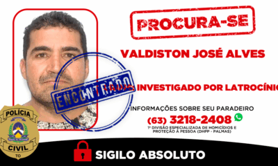 \A Polícia Civil do Tocantins localizou e prendeu, na manhã desta quarta-feira, 19, Valdiston José Alves, de 50 anos, apontado como um dos envolvidos no latrocínio...